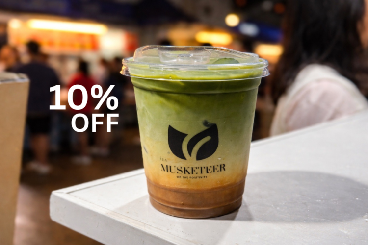 Enjoy 10% Off on Coffee or Milk Tea Drinks by Tea Musketeer. Valid for drinks with P100 and up price.